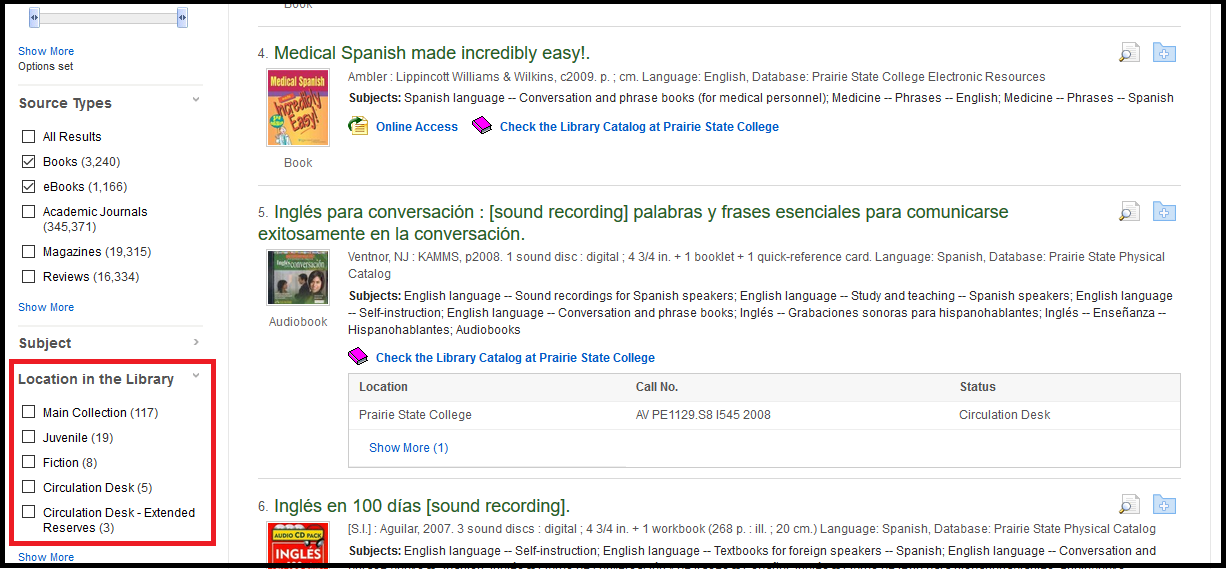To find the print and electronic books available in Spanish at PSC, follow these steps: