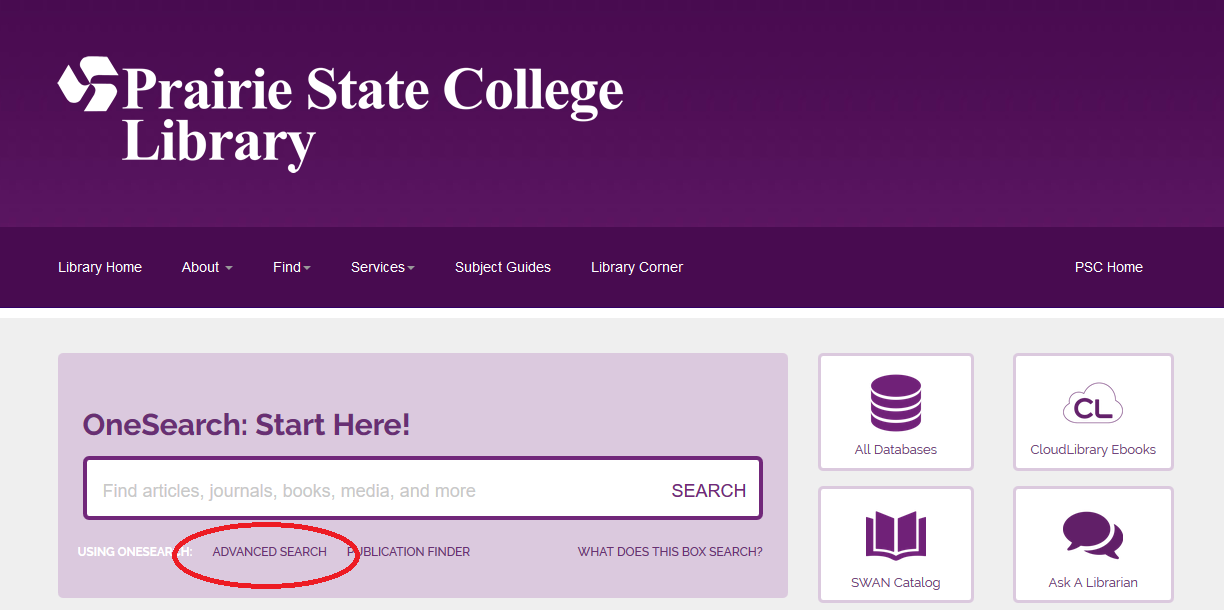 1. Choose the OneSearch Advanced Search (link available on the homepage).