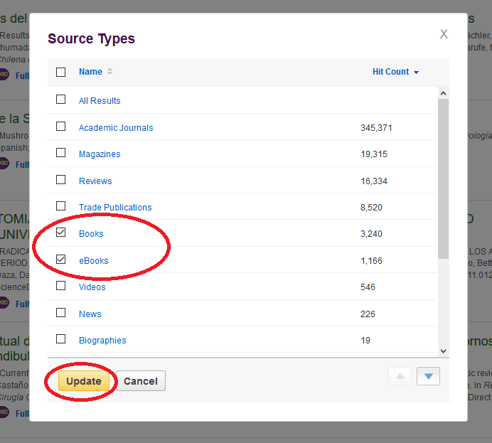 5. You can also choose to filter by additional criteria, such as books for youth or fiction books. You may select additional filters by choosing among the options within Source Types.